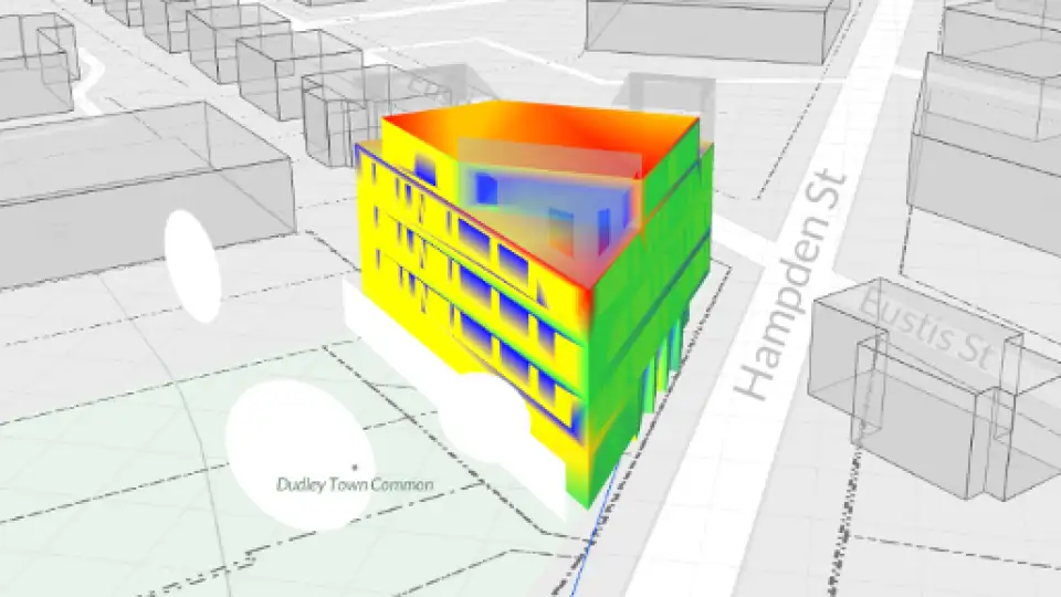 Step 4. This step consists of analyzing photovoltaic (PV) production on site. This is computed via an online software tool called Helioscope (see Figure 5). Oftentimes, with medium to large size multifamily projects, it won’t be possible to cover the entire building's energy usage with on-site solar. Such is the case for Hampden. In these cases, it’s good to target a PV output large enough to cover a building’s miscellaneous electrical loads.
