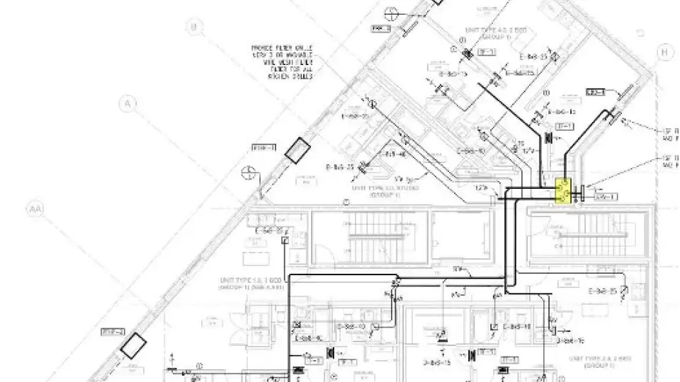 Case 2. Architectural Drawing Set. The second WUFI case study will be modeled based on the architect’s narrative for assemblies and systems. Usually, the architect’s narrative meets or exceeds the minimum energy code requirements.