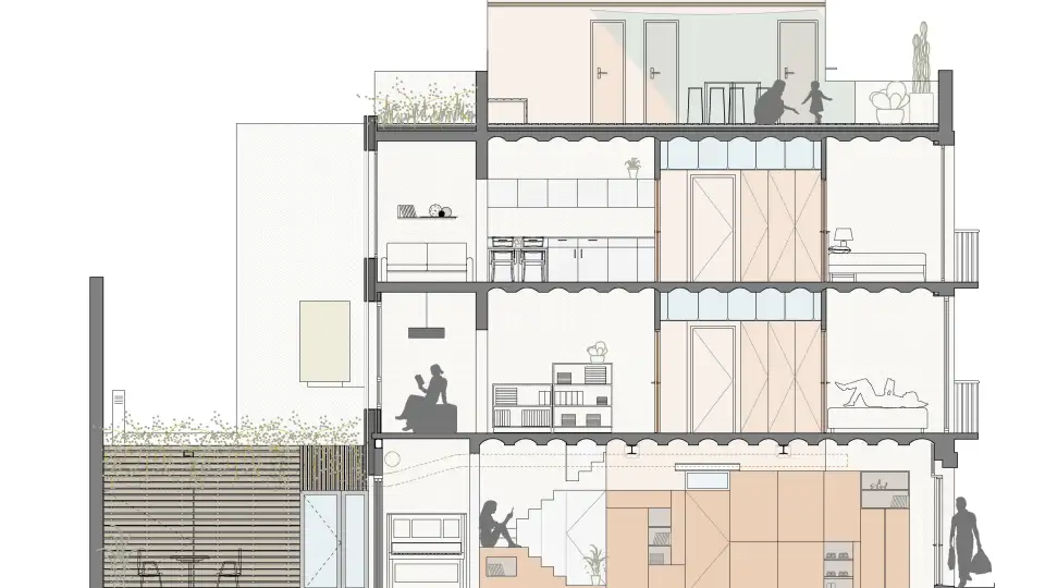 How do you sell the benefits of Passive House in a climate that is pretty lovely most of the year? Micheel Wassouf, principal of EnergieHaus, which is based in Barcelona, Spain, has been answering this question for more than a decade. During this period his 10-person firm has been increasingly busy with Passive House designing and consulting throughout Spain, and they recently certified their 200th building. But, in his hometown of Barcelona, which borders the Mediterranean Sea and can boast of a temperate climate in winter and summer days meant for swimming, Passive House has been a harder sell. Building efficiency just isn’t a front-burner issue for many, says Wassouf. Indeed, he still had not certified a Passive House project in Barcelona proper until ShowPass, his family’s retrofitted townhouse that was certified by PHI in 2021 as a step-by-step EnerPHit project.